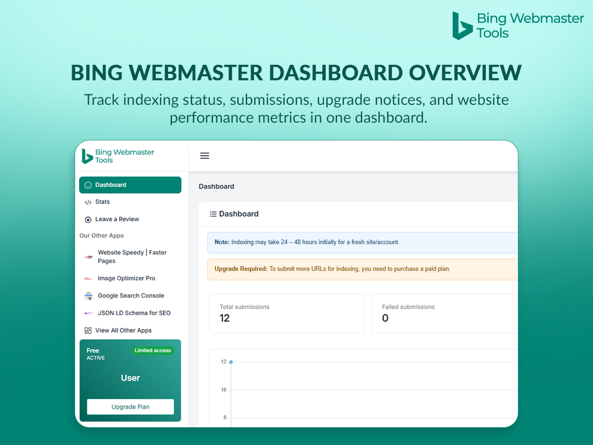 Bing Webmaster Tools brings Bing's full SEO and AI search platform directly into your dashboard. The app also handles automatic sitemap submission, so every new page you publish gets discovered by Bing faster. Bing processes over 450 million searches every day. This app connects your site to Bing Webmaster Tools, so you can track your performance, stay indexed, and see exactly how your content shows up in Microsoft Copilot and AI-powered search results. With a simple one-time setup, you get access to everything Bing Webmaster Tools offers - including their brand new AI Performance dashboard, which shows how your content is being used by Microsoft Copilot and AI-generated answers. As AI search becomes how people discover content, this is the data you can't afford to miss. Unlike Google, Bing gives you organic keyword data for free - right inside the dashboard. See what real users are searching, spot trends, and find SEO opportunities you won't find anywhere else. Your site deserves to be found everywhere - not just on Google. Set up once, and let the app handle the rest.