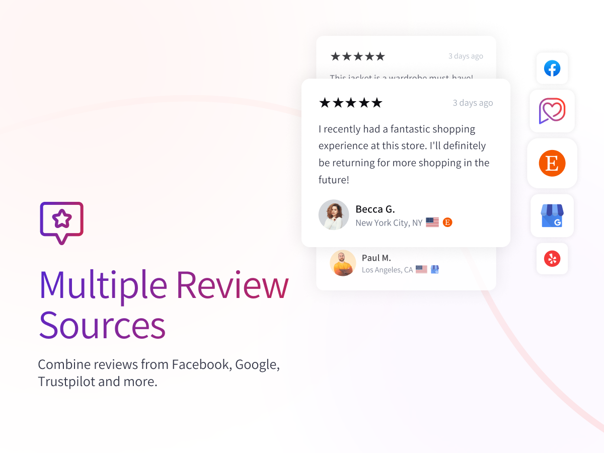 Import existing reviews from Google, Facebook, Etsy, TrustPilot and more