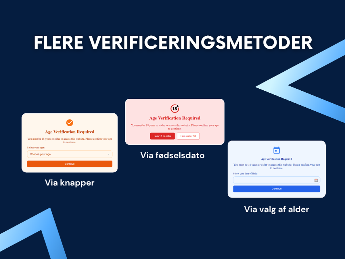 Flere verificeringsmetoder: Brug ja/nej-knapper, fødselsdato eller fødselsår til at bekræfte alder