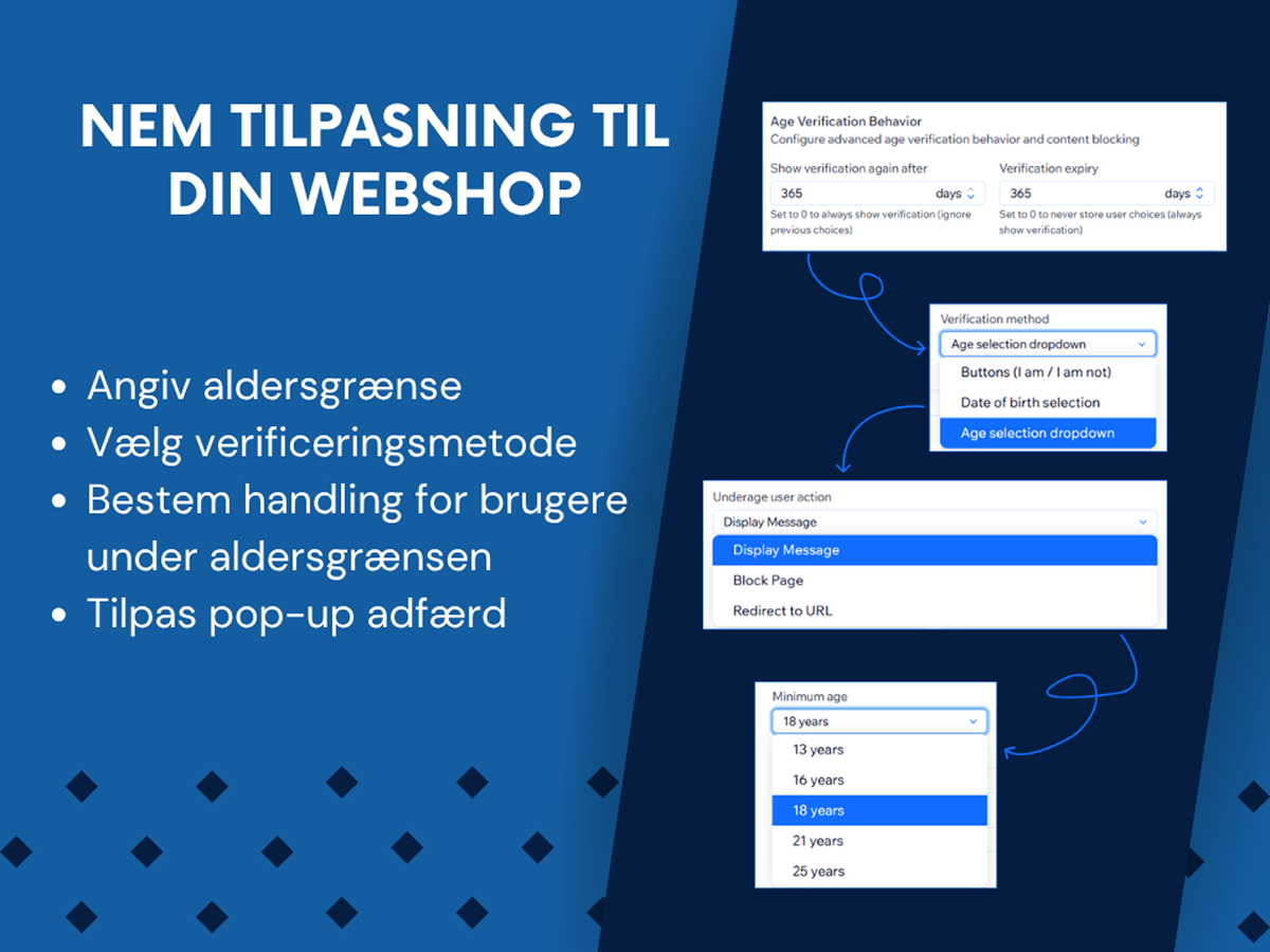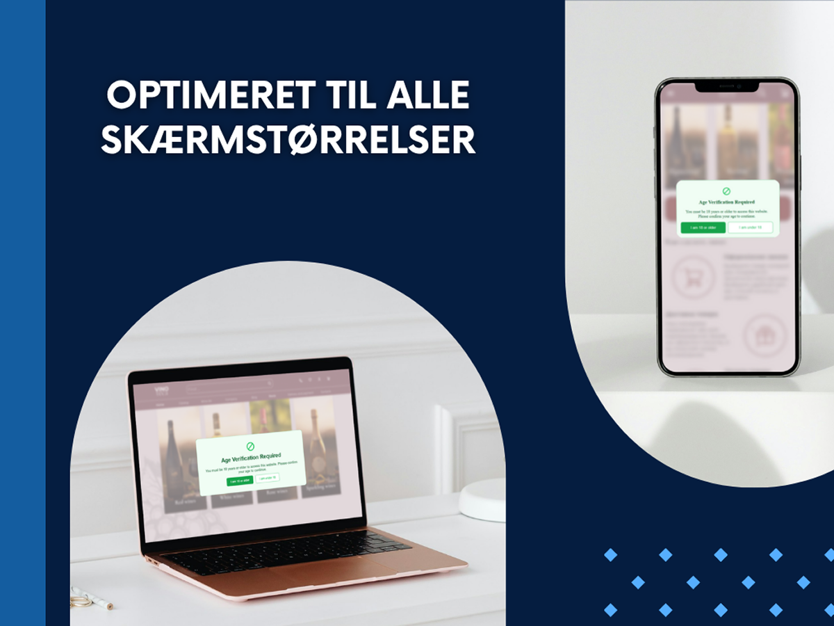 Besøgende kan bekræfte deres alder via simple ja/nej-valg eller ved at indtaste deres fødselsdato, hvilket giver en smidig og respektfuld brugeroplevelse. Løsningen fungerer problemfrit på alle enheder og husker brugerens valg for at undgå gentagne afbrydelser.