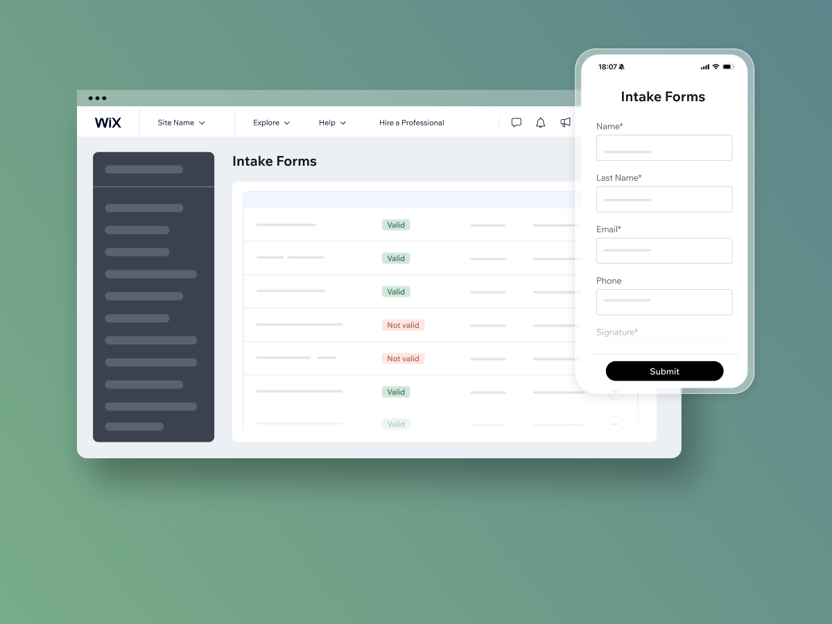 Overhold reglerne, spar tid og få de oplysninger, du har brug for fra klienterne – alt sammen med Wix Intake Forms, mens dine bookinger kører problemfrit. Indsaml alt fra forælders samtykke til ansvarsfritagelse eller helbredsformularer til fitnesscentre.