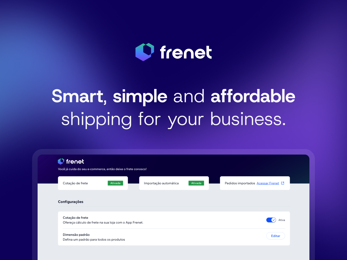 Did you know customers abandon their carts due to expensive shipping? With Frenet, you get unbeatable shipping rates from Correios, Jadlog, Total Express, and Loggi, plus the ability to integrate any carrier in Brazil. Through our app, create promotional rules using shipping prices and delivery times, set individual dimensions for each product, and offer much better shipping rates. Install the app and check shipping costs based on origin and destination cities.