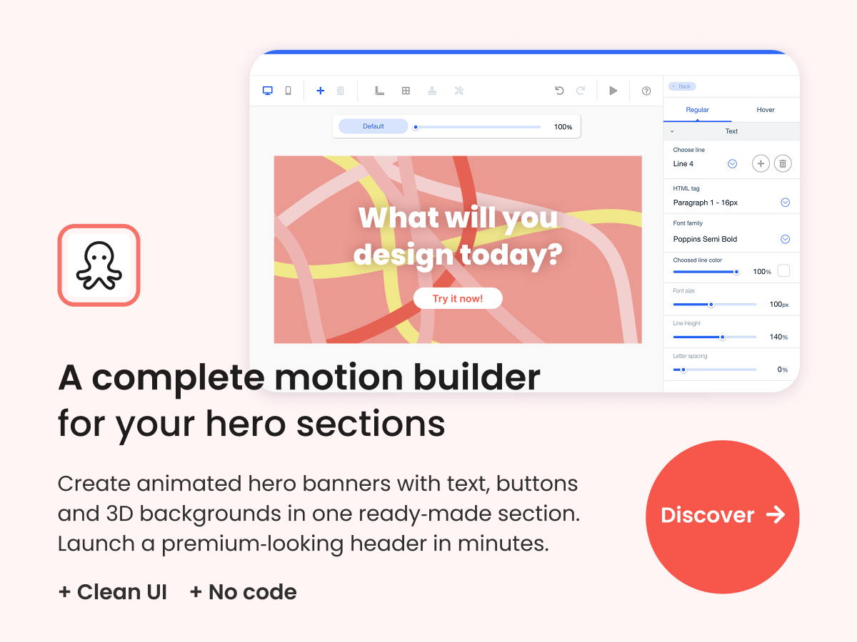 Powerful Text Animations: Bring attention to your message with 40+ effects like Countdown Cube, Shuffle, Gradient Text and Typewriter. Choose how each line appears and keep visitors engaged