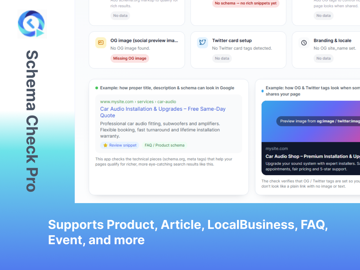 Auto-Detect Multiple Schema Types – Supports Product, Article, LocalBusiness, FAQ, Event, and more